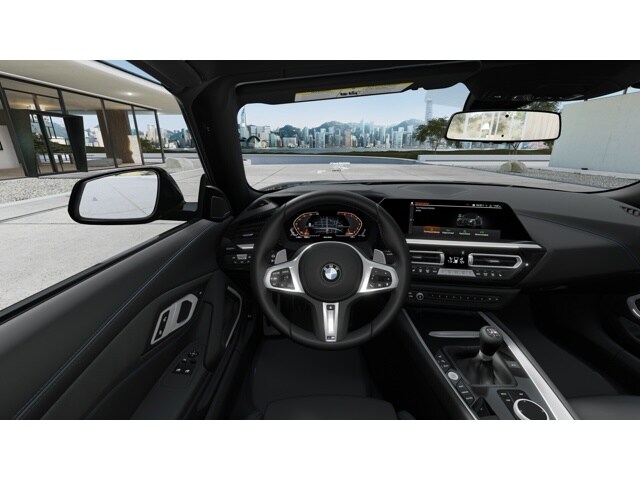 Black Sapphire Metallic 2026 BMW Z4 sDrive M40i RWD 3.0L I6 Black W/Blue Stitching Artificial Leather.